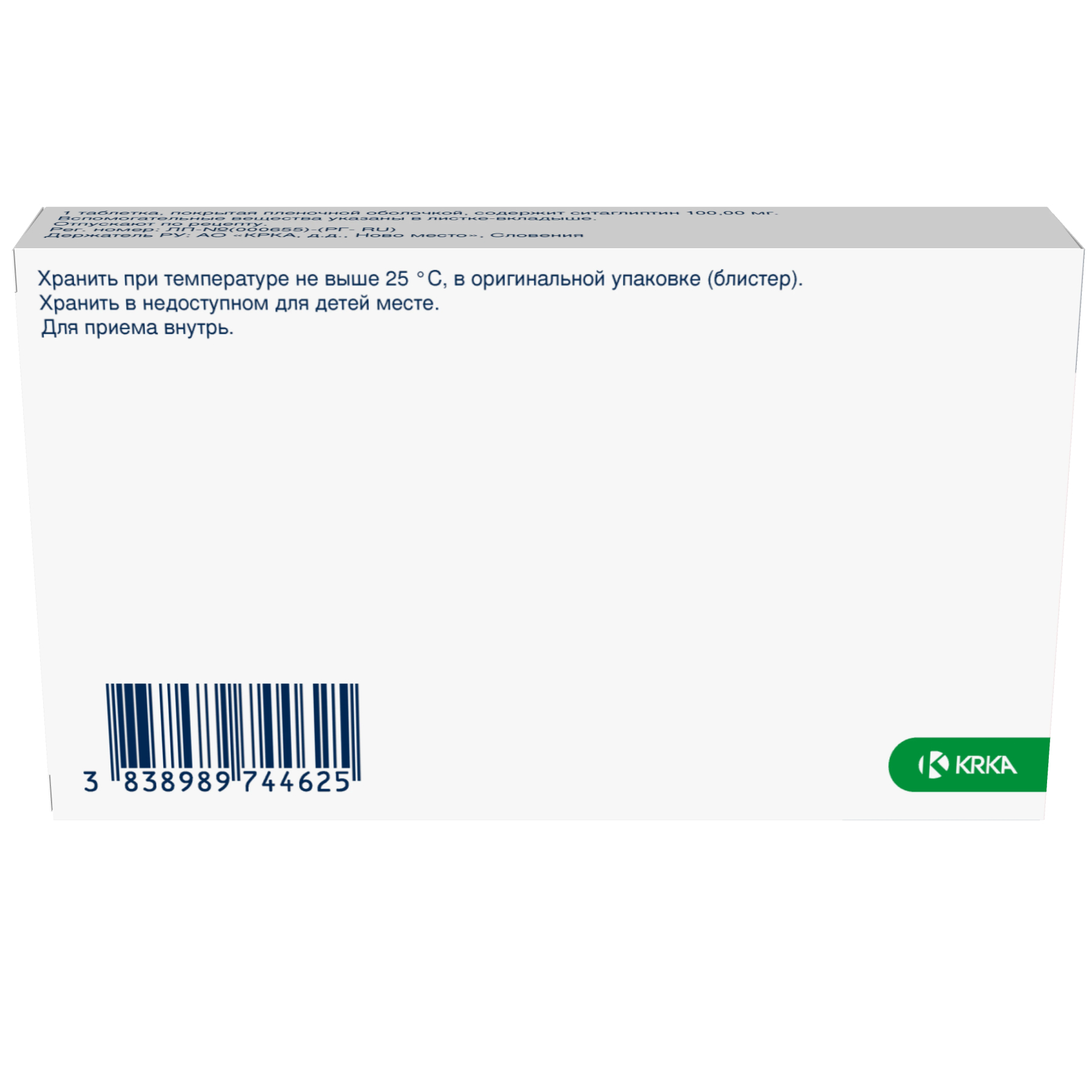 Вспомогательные вещества: целлюлоза микрокристаллическая, кальция гидрофосфат, кроскармеллоза натрия, натрия стеарилфумарат, магния стеарат.