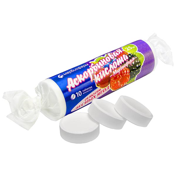 Активное вещество: аскорбиновая кислота - 25 мг.