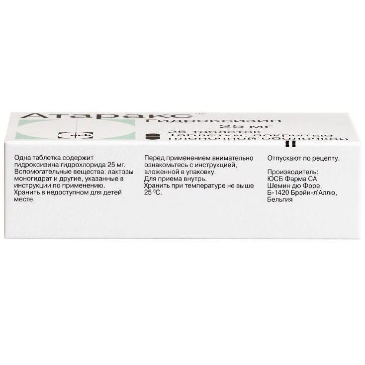 Активное вещество: гидроксизина гидрохлорид - 25 мг.