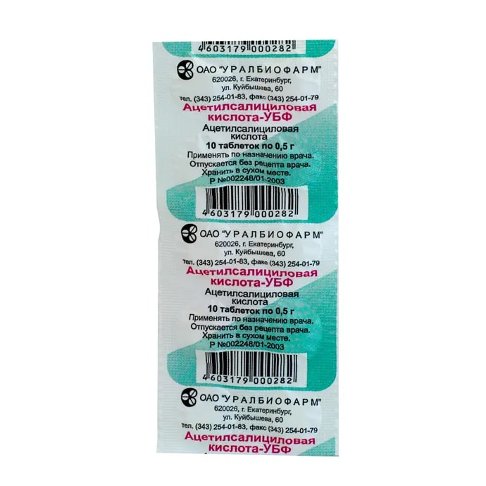 Активное вещество: ацетилсалициловая кислота - 500 мг,