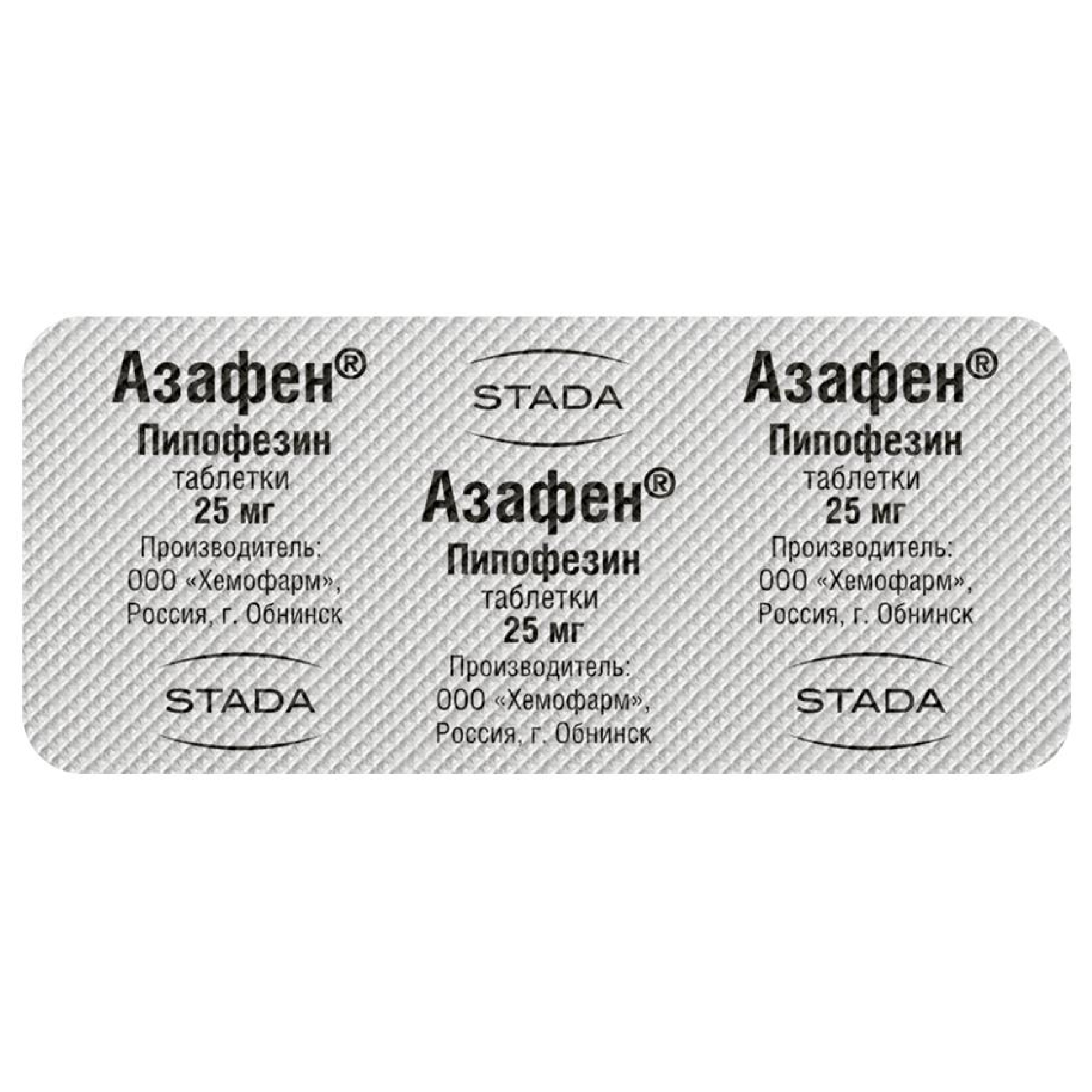 В исследовании in vitro показано, что пипофезин не является ингибитором или индуктором изоферментов CYP1A2, CYP2C9, CYP2C19, CYP2D6 и CYP3A4, поэтому маловероятно взаимодействие препарата Азафен® с лекарственными средствами, являющимися субстратами данных изоферментов. Флувоксамин, пропафенон, мексилетин, ципрофлоксацин, являясь ингибиторами CYP1A2, могут повышать концентрацию пипофезина в плазме крови.