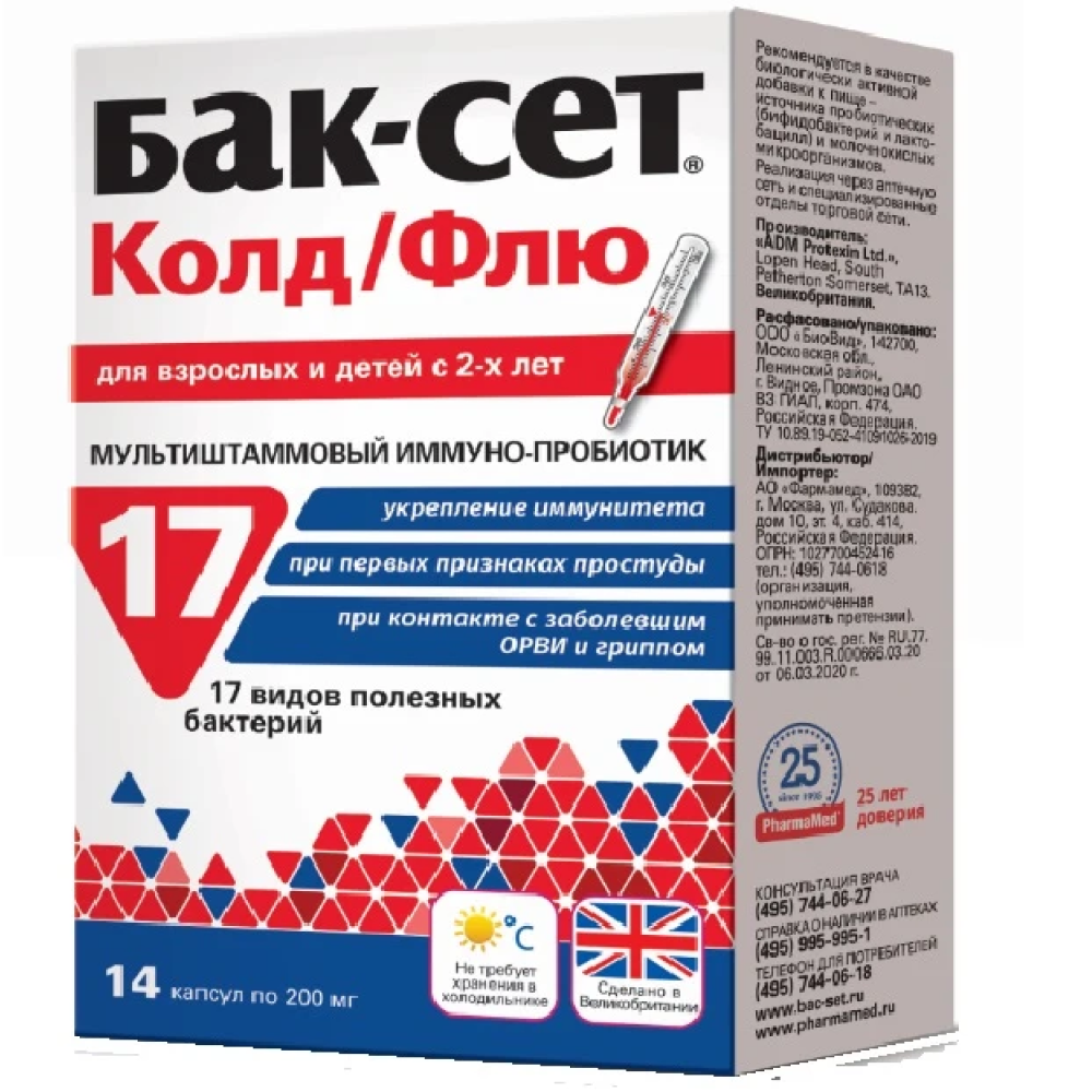 Накануне сезонного подъема заболеваемости простудными заболеваниями (ОРВИ) Бак-Сет® Колд/Флю рекомендуется принимать повторными курсами по 2 недели. Детям рекомендуется начать принимать Бак-Сет® Колд/Флю за 2 недели до начала посещения детского сада или школы.