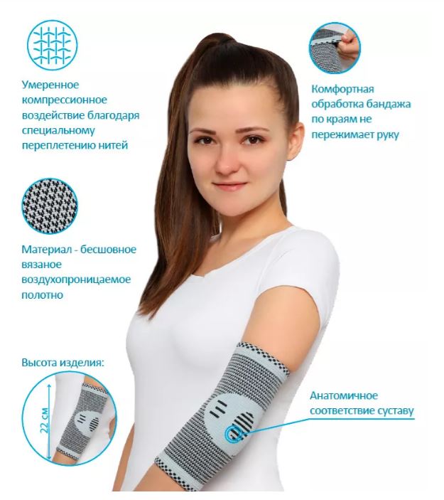 • Обеспечивает необходимую компрессию области локтевого сустава. Способствует уменьшению дискомфорта и боли