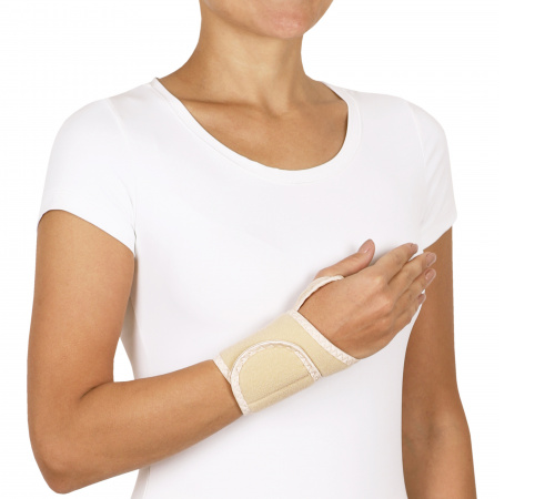• Разъемная конструкция с вырезом для фиксации большого пальца и лентой Velcro обеспечивает индивидуальную настройку обхвата запястья, позволяет легко надевать и снимать бандаж без посторонней помощи