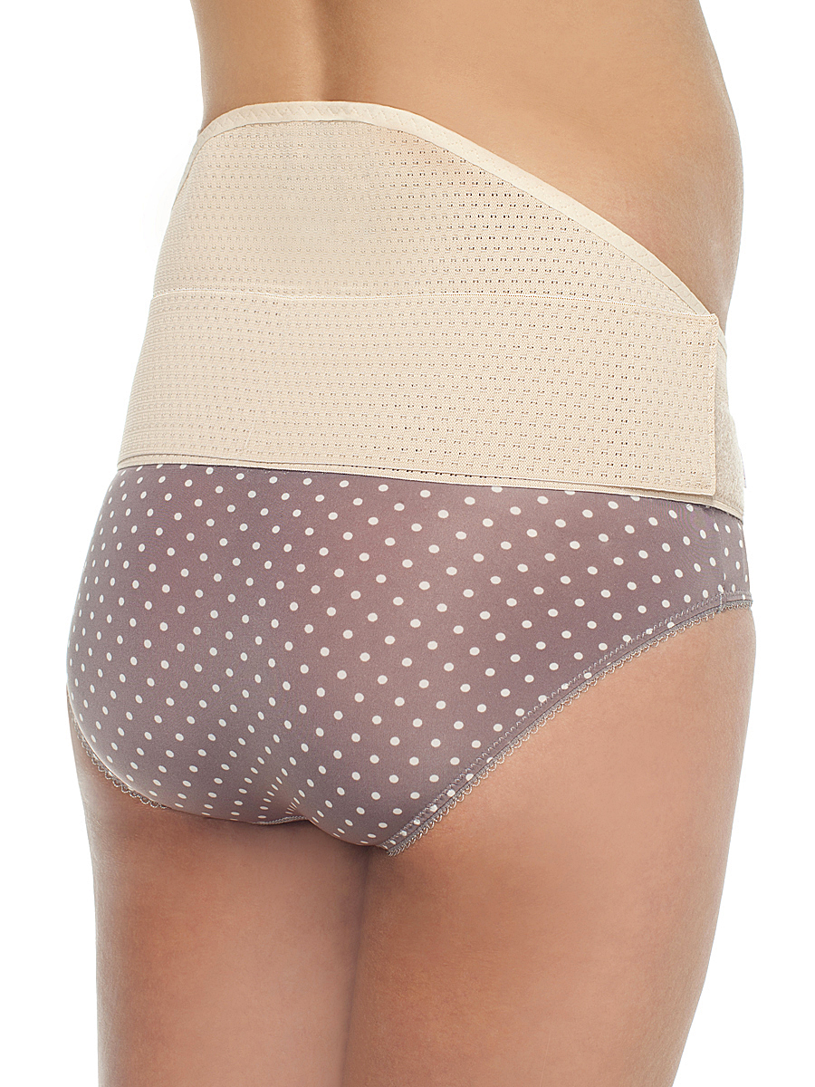 Бандаж можно носить полукруглой деталью как вверх, так и вниз, в зависимости от Ваших ощущений и рекомендаций врача акушера-гинеколога. После родов пояс необходимо перевернуть -задом-наперед-, чтобы широкая его часть утягивала и фиксировала живот, а узкая застегивалась на спине.