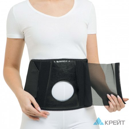 Фиксирует переднюю и боковые части брюшной стенки, поддерживает мышцы брюшного пресса в тонусе. Диаметр отверстия 70 мм. Накладка на переднюю панель из кожзаменителя для удобства ухода за изделием.