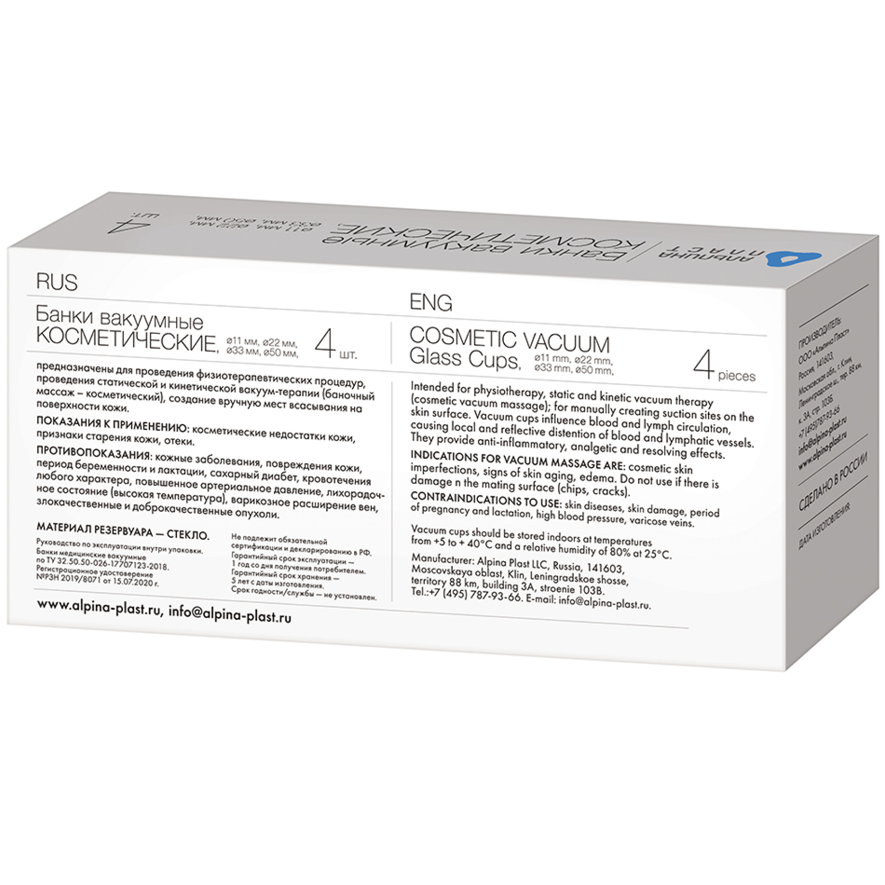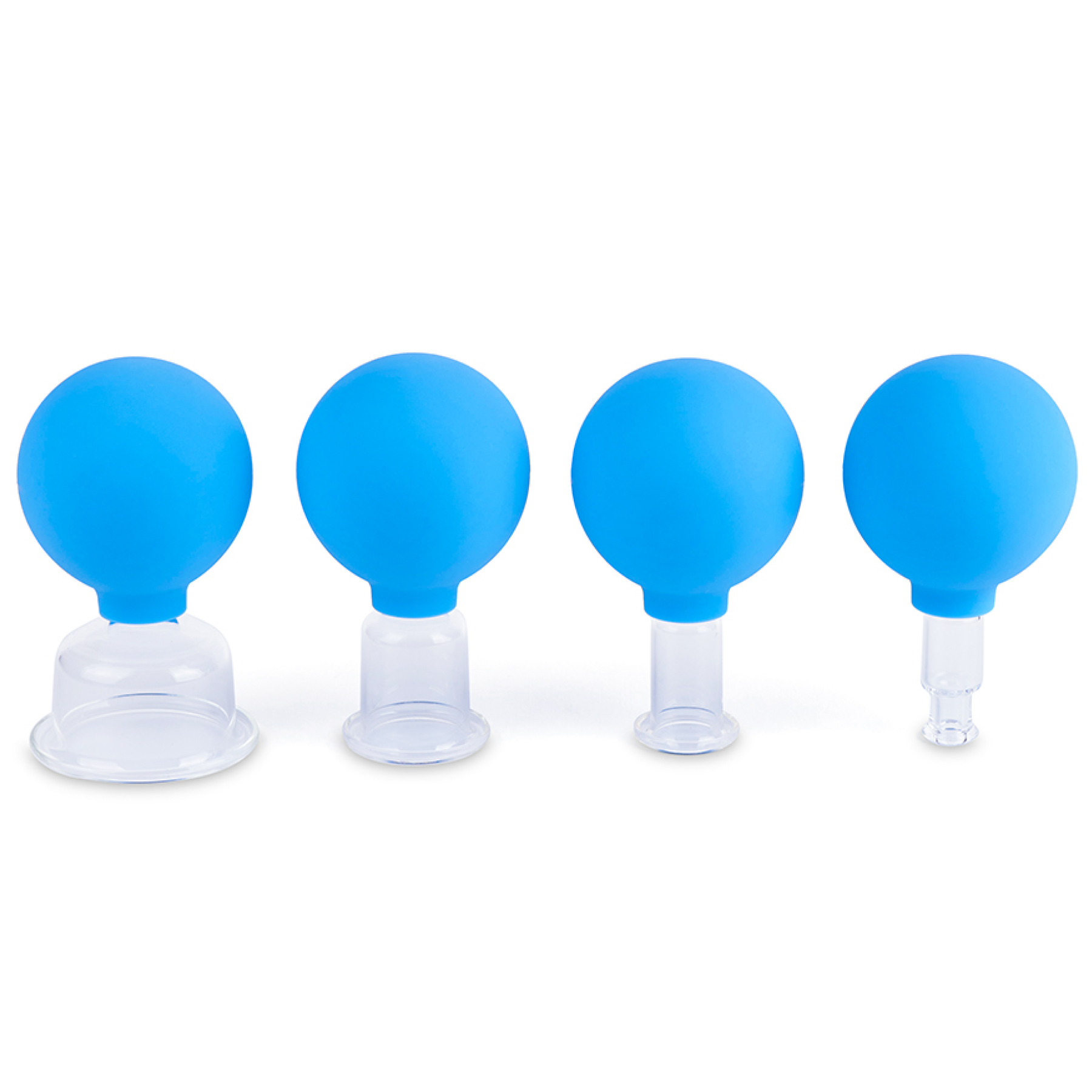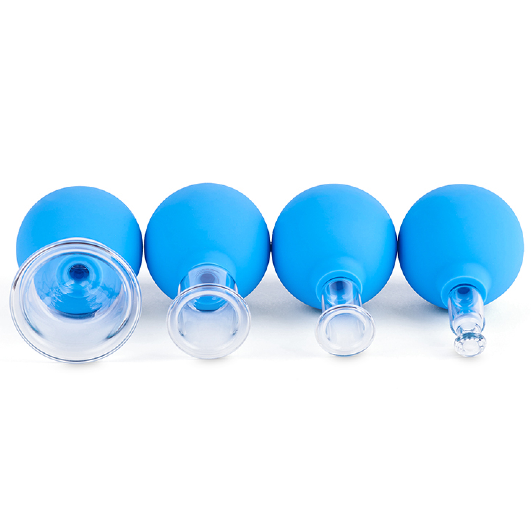 Уникальный и тщательно подобранный комплект из 4 банок различного диаметра позволяет применить их на любом участке тела – от лица и шеи при косметическом массаже, до рук и бедер при антицеллюлитном и антивозрастном массаже.