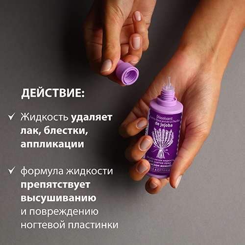 Формула жидкости препятствует высушиванию и повреждению ногтевой пластинки.