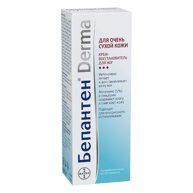 Благодаря такому составу Бепантен Derma Крем-Восстановитель для ног проникает в глубокие слои кожи, интенсивно смягчает, увлажняет и питает ее, способствуя естественному восстановлению кожного барьера. Бепантен Дерма помогает добиться устойчивого эффекта смягчения очень сухой кожи ног и защитить кожу от чрезмерного ороговения.