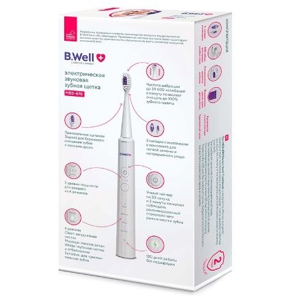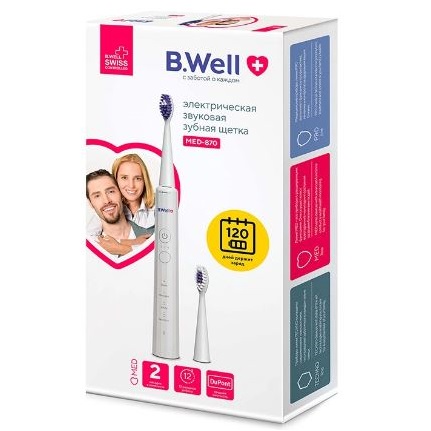 Электрическая звуковая зубная щетка B.Well MED-870 предназначена для эффективного и бережного очищения зубов, межзубных промежутков и массажа десен. Звуковая технология колебательных движений позволяет очищать поверхность зуба даже в самых труднодоступных местах, а высококачественные щетинки Dupont безопасны для эмали и десен.