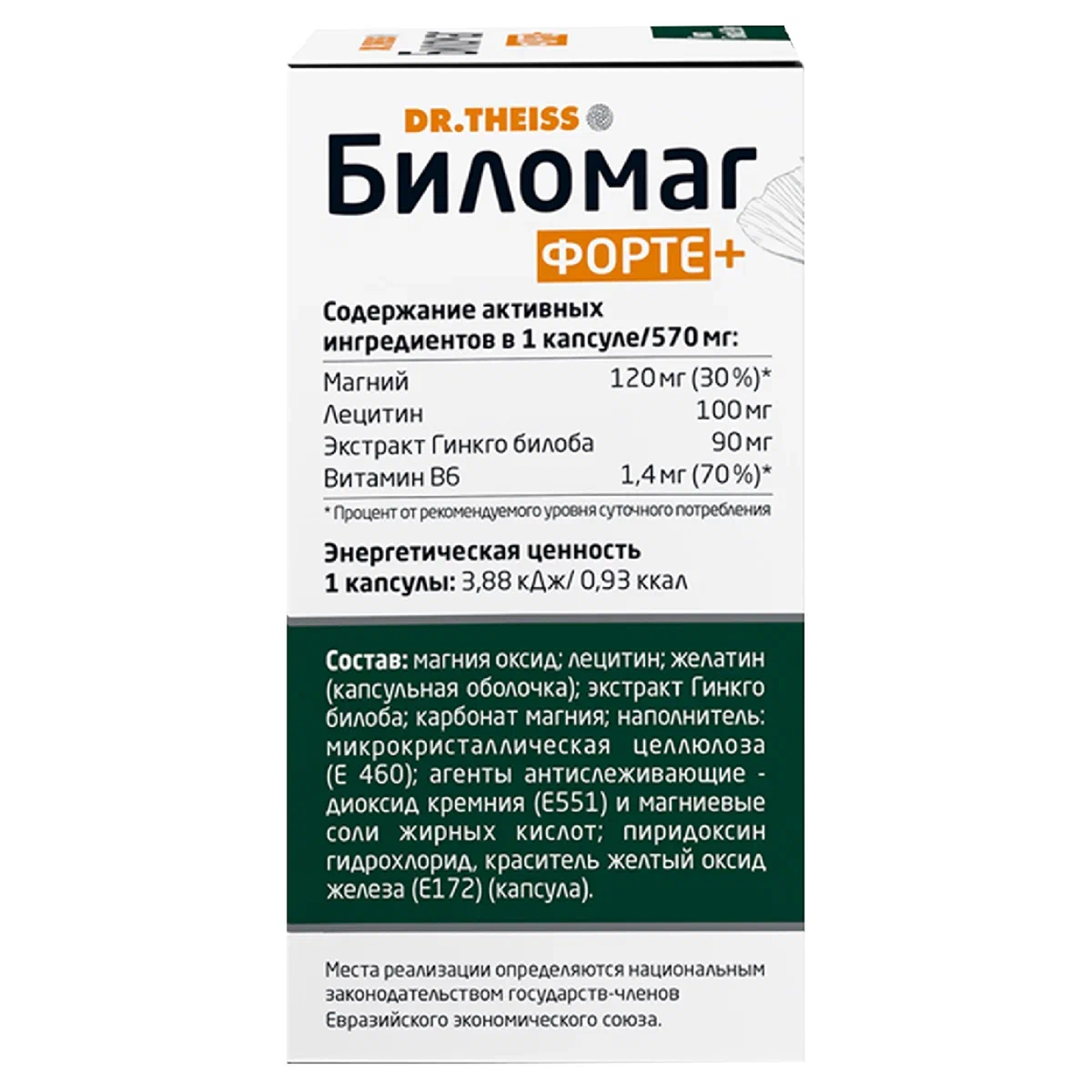 Биломаг Форте+ - биологически активная добавка к пище, является дополнительным источником магния и витамина В6. Содержит экстракт Гинкго билоба, лецитин.