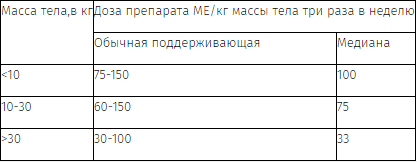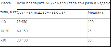 Обычная доза для поддержания оптимального гемоглобина составляет от 25 до 50 МЕ/кг массы тела два раза в неделю.