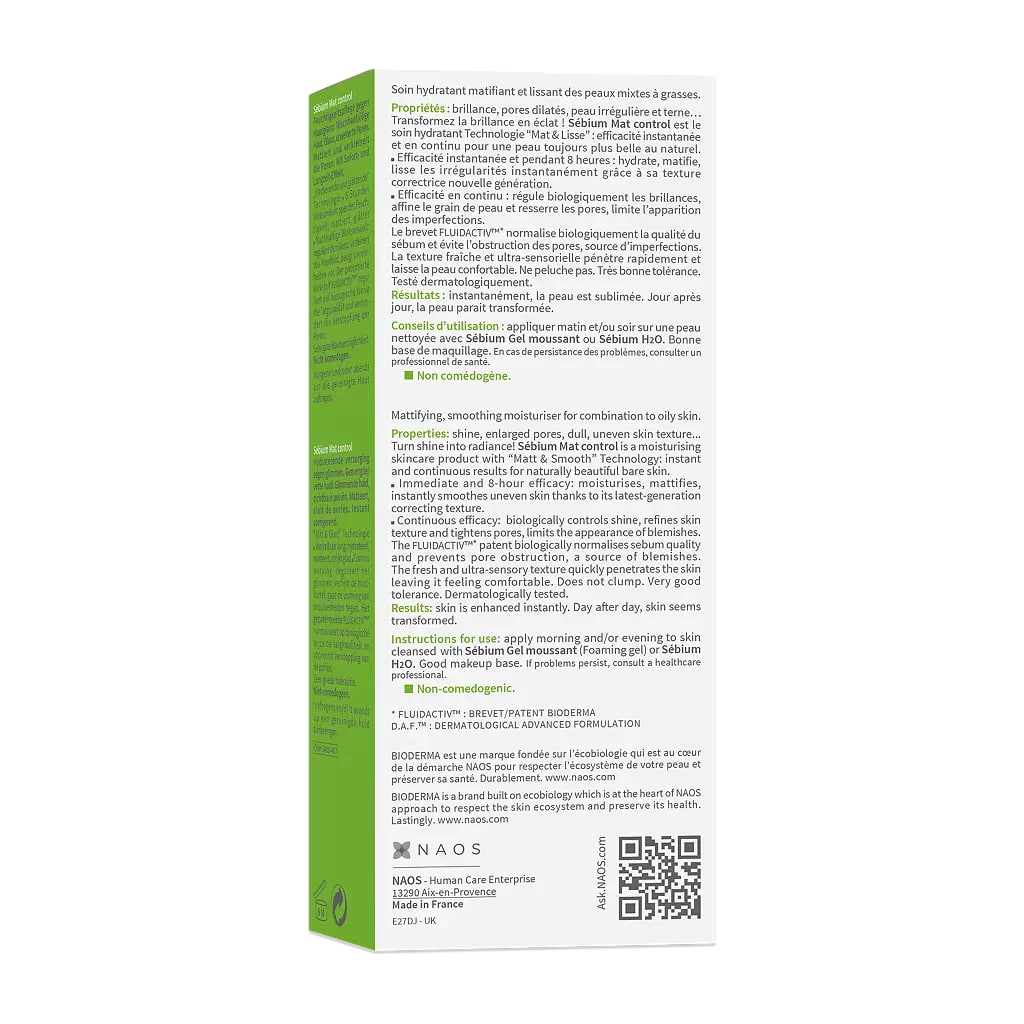 В составе крема Bioderma Sébium Mat Control специальная матирующая пудра. Она действует незамедлительно и надолго — 8 часов матовой кожи. Исследования показали, что после 28 дней использования выделение себума сокращается на 31 %. Матирующий крем Себиум не сушит и не стягивает кожу. Обеспечивает качественное увлажнение и подходит даже чувствительной комбинированной, жирной и проблемной коже.