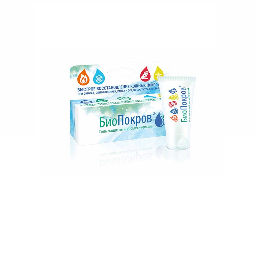 Гель защитный косметический БИОПОКРОВ® представляет собой буферный раствор комплексных соединений лантана в полиоксисоединениях. Гель обладает защитным и восстанавливающим действием, легко наносится, имеет нейтральный для кожи pH, подходит для любого типа кожи, не содержит в своем составе красящих, ароматических аллергенов. При впитывании в кожу, гель образует молекулярную сетку с избирательной пропускной способностью: молекулы воды, кислорода и азота свободно пропускаются, обеспечивая нормальное функциональное состояние, кожное дыхание и увлажнение. При однократном нанесении, действие сохраняется в течение 48 часов. Гель защитный косметический БИОПОКРОВ® сохраняет функциональное состояние кожи, поддерживая естественный баланс взаимодействия с окружающей средой.