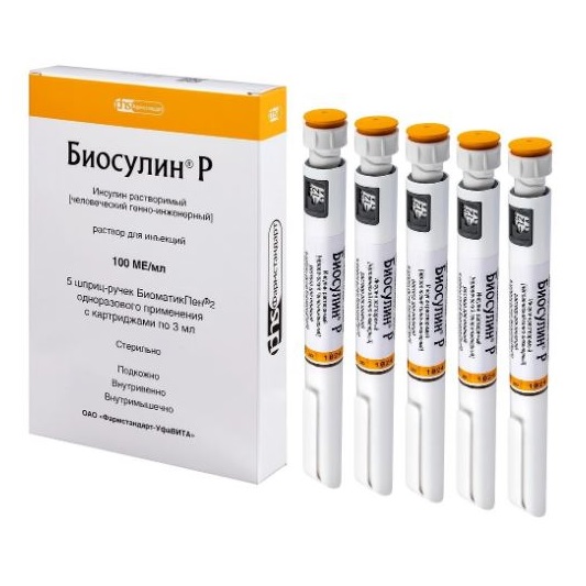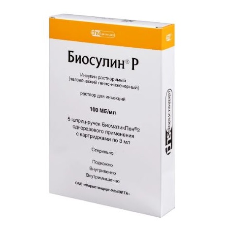 Биосулин® Р - инсулин короткого действия и обычно используется в комбинации с инсулином средней продолжительности действия (Биосулин® Н).