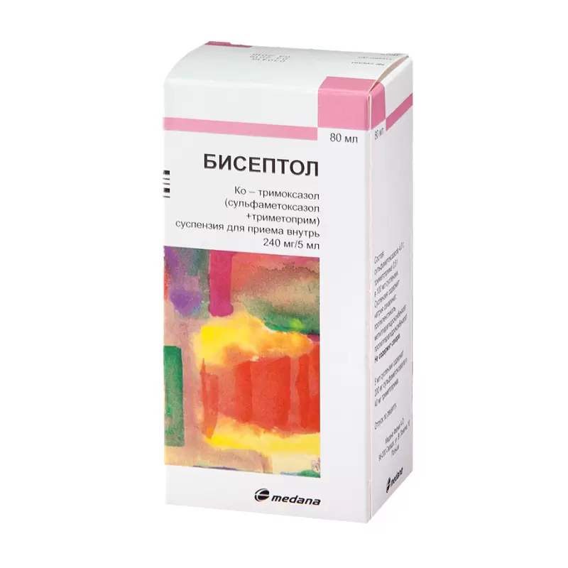5 мл суспензии содержат 240 мг ко-тримоксазола (соответствует 200 мг сульфаметоксазола и 40 мг триметоприма).