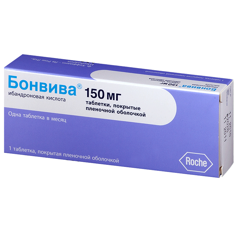 В 2-летнем исследовании (ВМ16549) при участии женщин в постменопаузе, страдающих остеопорозом, общий профиль безопасности применения препарата Бонвива® 150 мг 1 раз в месяц был сходен с таковым при применении препарата Бонвива® 2.5 мг ежедневно. Общая доля пациентов, у которых были выявлены нежелательные реакции, составляла 22.7% и 25% после года и 2-х лет приема препарата Бонвива® 150 мг 1 раз в месяц, соответственно. В большинстве случаев нежелательные реакции были по интенсивности слабо или умеренно выражены и не приводили к отмене препарата. Самой частой нежелательной реакцией являлась артралгия.