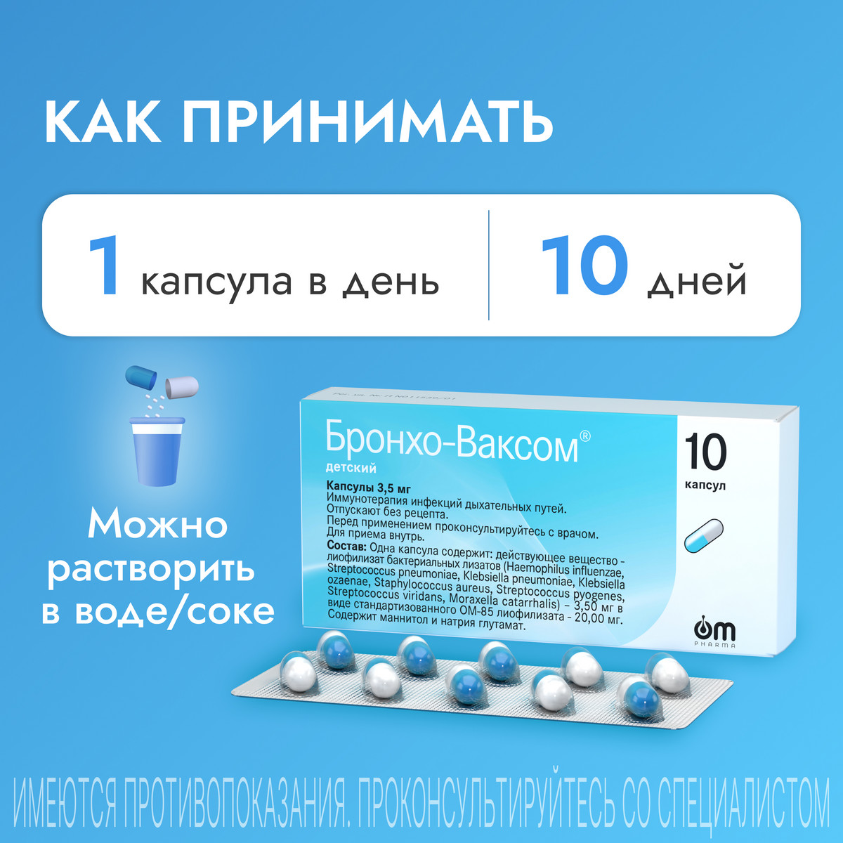 Бронхо-Ваксом® детский назначают детям в возрасте от 6 месяцев до 12 лет.