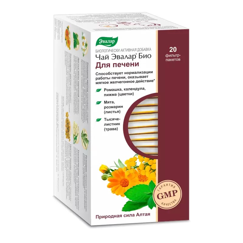 Способствует нормализации работы печени, оказывает мягкое желчегонное действие. Как работают ингредиенты? Ромашка аптечная снимает спазм желчных протоков, усиливает желчеотделение, уменьшает воспалительные явления. Мята перечная. Мята и её препараты действуют спазмолитически, седативно, желчегонно, улучшают пищеварение, имеют и противовоспалительное действие. Принимают её при гипертонической болезни, бессоннице, заболеваниях печени, при спазмах в желудке, кишечнике, при метеоризме, мигрени, для улучшения аппетита, улучшения сердечной деятельности. Календула лекарственная (Ноготки лекарственные) обладает спазмолитическими свойствами. Расслабляя гладкомышечные структуры таких органов, как желудок, кишечник и печень, календула вместе с тем возбуждает секреторную активность, что способствует усилению желчеобразования и желчеотделения и повышению секреторной активности желудка. Розмарин лекарственный. Водный настой розмарина обладает тонизирующим, противовоспалительным, вяжущим, желчегонным, обезболивающим свойствами. Тысячелистник обыкновенный – оказывает спазмолитическое действие на гладкие мышцы кишечника, мочевыводящих и желчных путей, в связи, с чем расширяет желчные протоки и увеличивает желчеотделение в двенадцатиперстную кишку, а также повышает диурез и может купировать боль, вызванную спазмами в кишечнике. Пижма обыкновенная – обладает противоглистными и желчегонными фармакологическими свойствами.