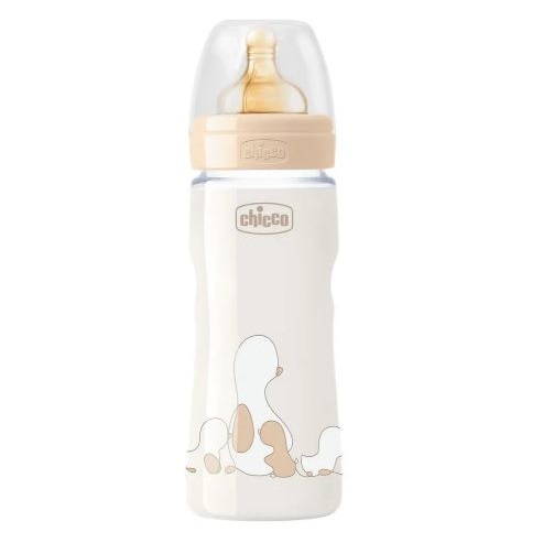 Бутылочка для кормления Chicco Original Touch 330мл. с латексной соской для детей от 4 месяцев. Антиколиковый клапан снижает вероятность попадания воздуха во время кормления ребенка и риск возникновения колик.