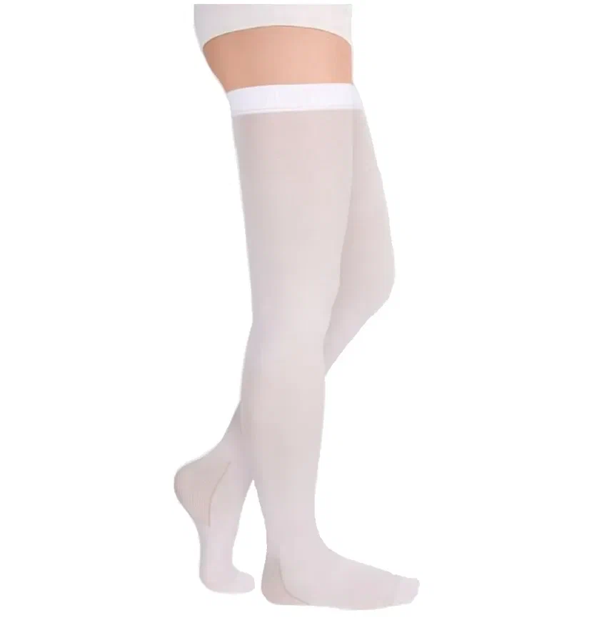 - для чулок с силиконовой лентой – не смазывать кремом или мазью ту часть ноги, куда приклеивается силиконовая лента;