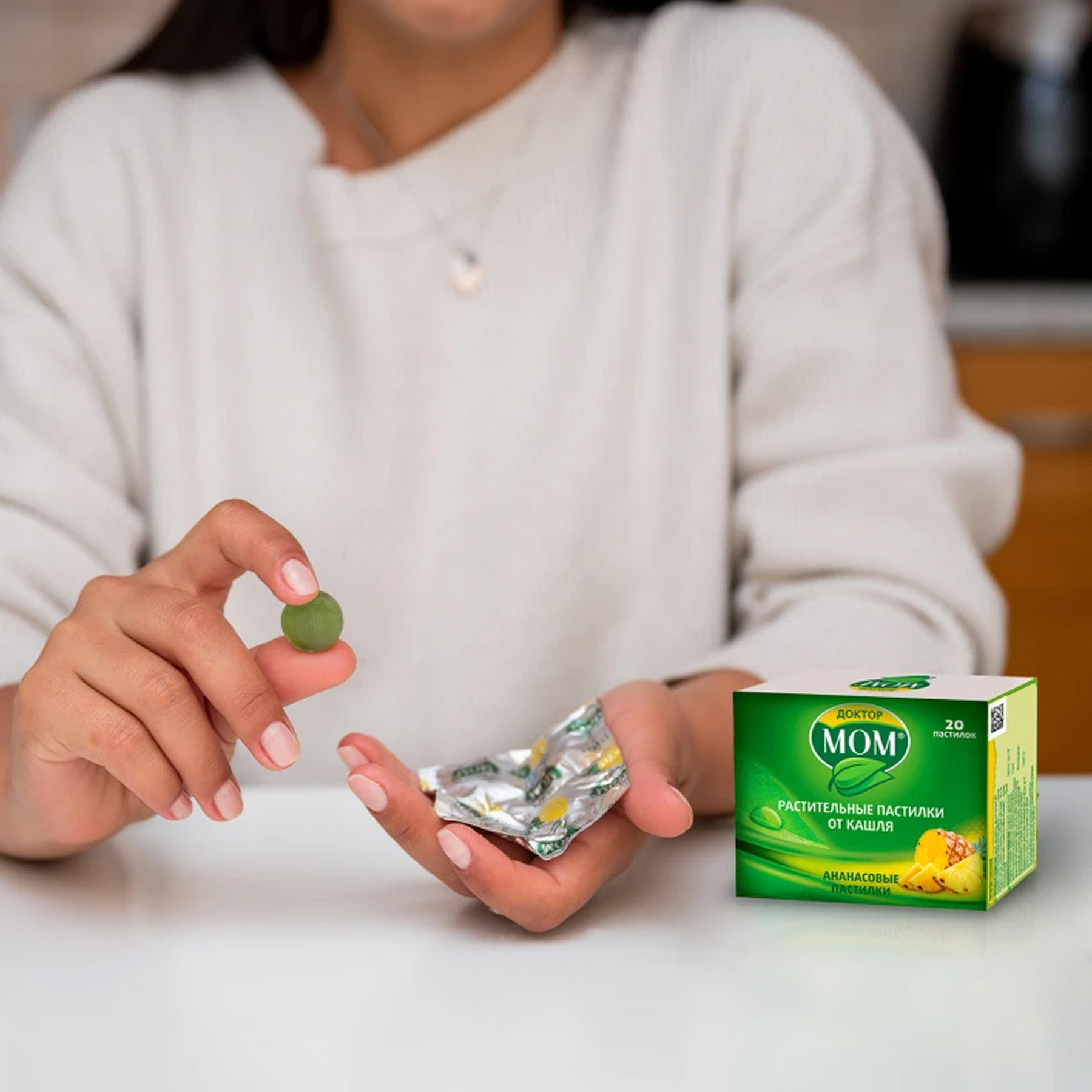 Все аналогиДоктор Мом® Пастилки от кашля №20 (ананаc) - это комбинированный препарат растительного происхождения, который помогает бороться с сухим кашлем, а также оказывает противовоспалительное и отхаркивающее действие (1). Средство удобно носить с собой и использовать в любом месте.
