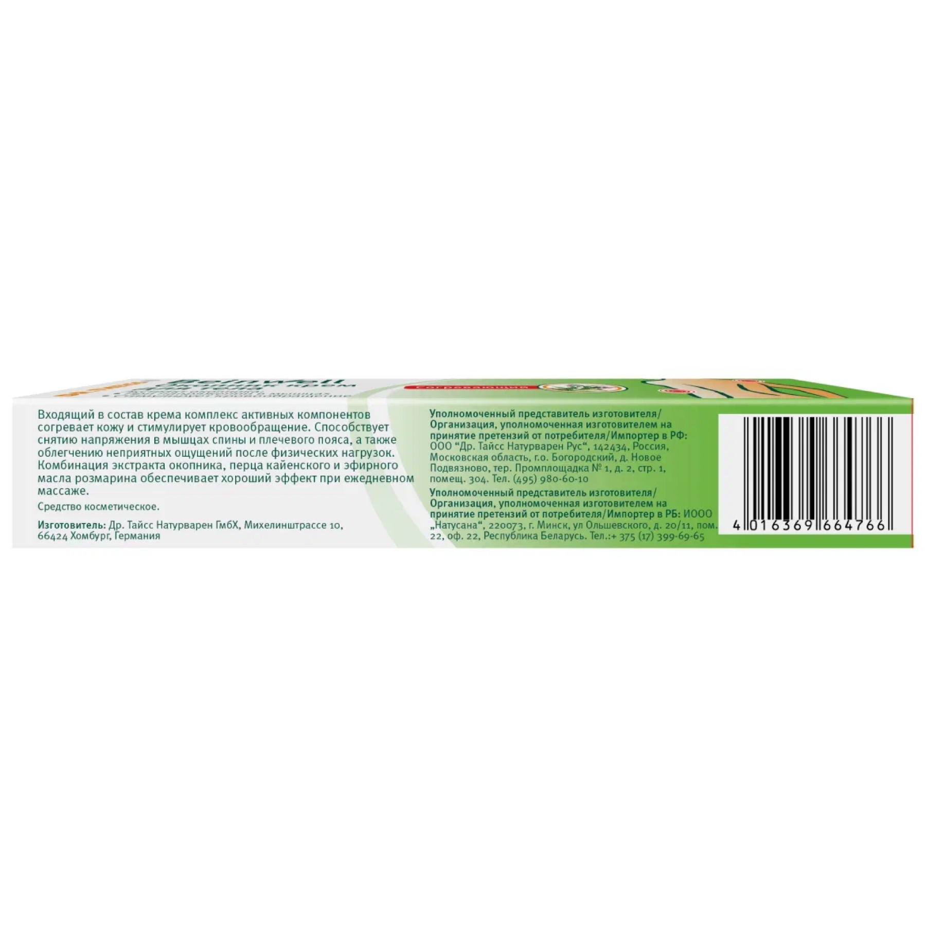 Действующие вещества: настойка корня окопника 10 г, витамин E (токоферола ацетат), масло сосны, хлорофилл,