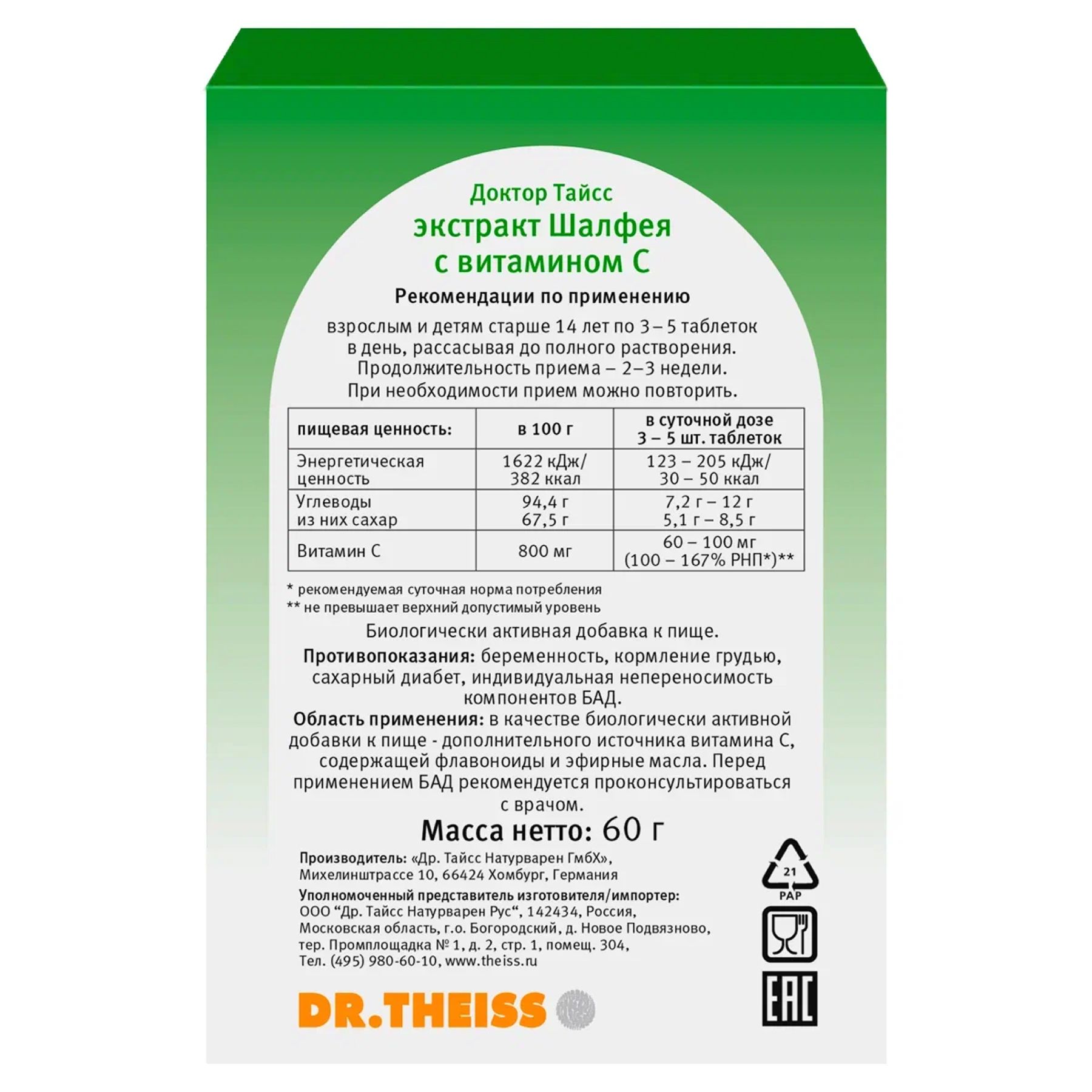 Экстракт шалфея 50 мг; масло шалфея 6 мг; аскорбиновая кислота 20 мг.