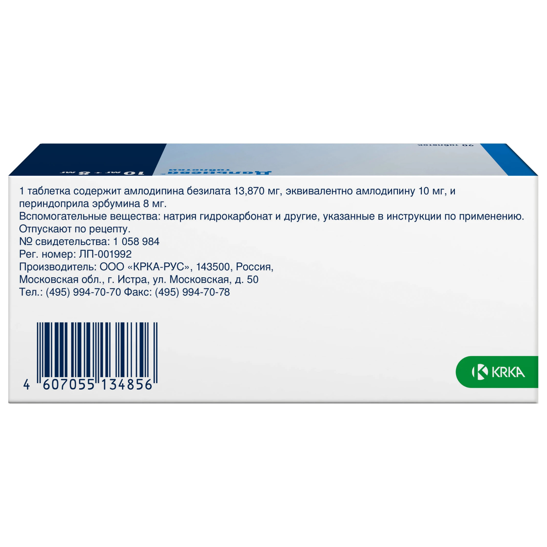 Активные вещества: амлодипин 10 мг, периндоприл 8 мг.