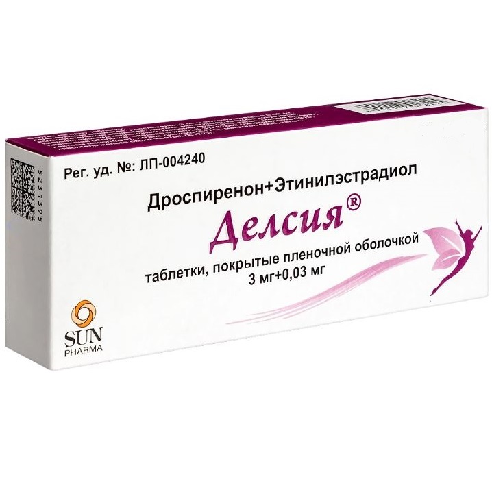 Дроспиренон, входящий в состав в препарата Делсия® обладает антиминералокортикоидной активностью и способен предупреждать увеличение массы тела и появление других симптомов (например, отеков), связанных с эстрогензависимой задержкой жидкости. Дроспиренон оказывает положительное воздействие на предменструальный синдром. В сочетании с этинилэстрадиолом дроспиренон демонстрирует благоприятный эффект на липидный профиль, характеризующийся повышением липопротеинов высокой плотности. Дроспиренон также обладает антиандрогенной активностью и способствует уменьшению угревой сыпи (акне), жирности кожи и волос (себореи). Эти особенности дроспиренона следует учитывать при выборе контрацептива женщинам с гормонозависимой задержкой жидкости, а также женщинам с акне и себореей. Дроспиренон не обладает андрогенной, эстрогенной, глюкокортикоидной и антиглюкокортикоидной активностью. Все это в сочетании с антиминералокортикоидным и антиандрогенным действием обеспечивает дроспиренону биохимический и фармакологический профиль, сходный с естественным прогестероном.