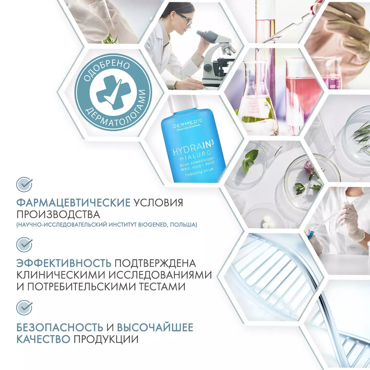 Увлажняющая сыворотка Dermedic Hydrain3 Hialuro для лица шеи и декольте мгновенно разглаживает кожу, повышает ее упругость и защищает от преждевременного старения.
