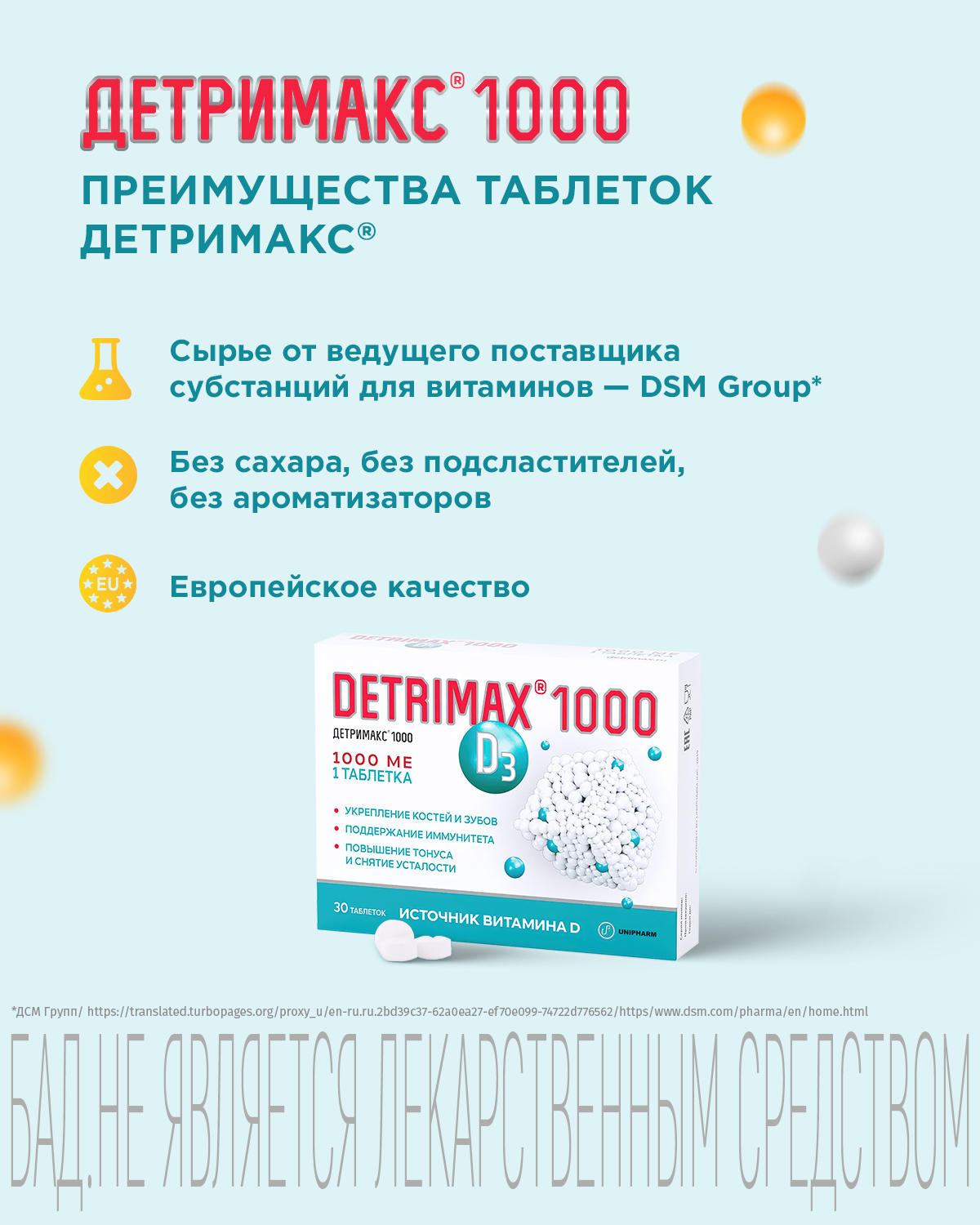 Детримакс® Витамин Д3 содержит витамин D3 (колекальциферол) - жизненно важный жирорастворимый витамин, необходимый для обеспечения деятельности практически всех органов и систем человеческого организма. Хорошо усваивается в ЖКТ за счет образования в среде тонкого кишечника мицеллярных соединений.