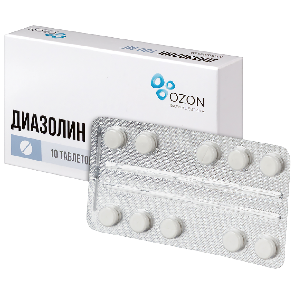 Диазолин является блокатором Н1 -гистаминовых рецепторов. Обладает противоаллергическим действием, уменьшает отек слизистых оболочек. Ослабляет спазмогенный эффект гистамина в отношении гладких мышц бронхов, кишечника и уменьшает гипотензивное действие гистамина, а также его влияние на проницаемость сосудов. В отличие от антигистаминных препаратов первого поколения не оказывает выраженного седативного и снотворного действия.