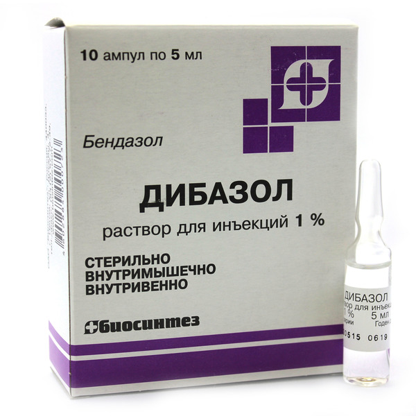 Инъекционный раствор Дибазола вводят внутривенно и внутримышечно.