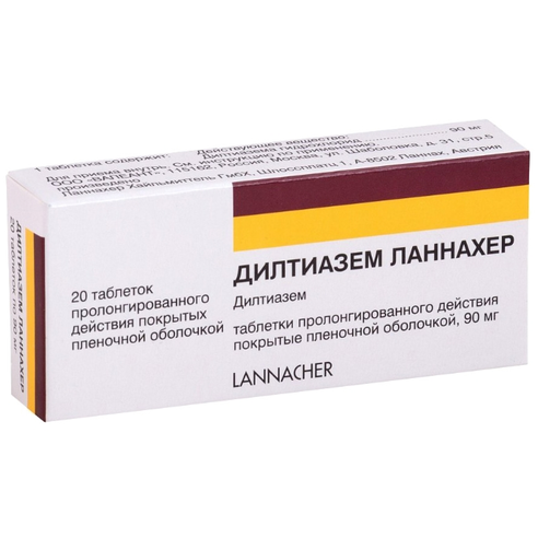 Т1/2 дилтиазема при приеме внутрь носит двухфазный характер: ранний - 20-30 мин, конечный - 3.5 ч (5-8 ч - при высоких и повторных дозах). Т1/2 препарата Дилтиазем Ланнахер в лекарственной форме таблетки пролонгированного действия 90 мг и 180 мг составляет до 10 ч. Выводится через кишечник с желчью (65%) и почками (35%, в т.ч. 2-4% в неизмененном виде).