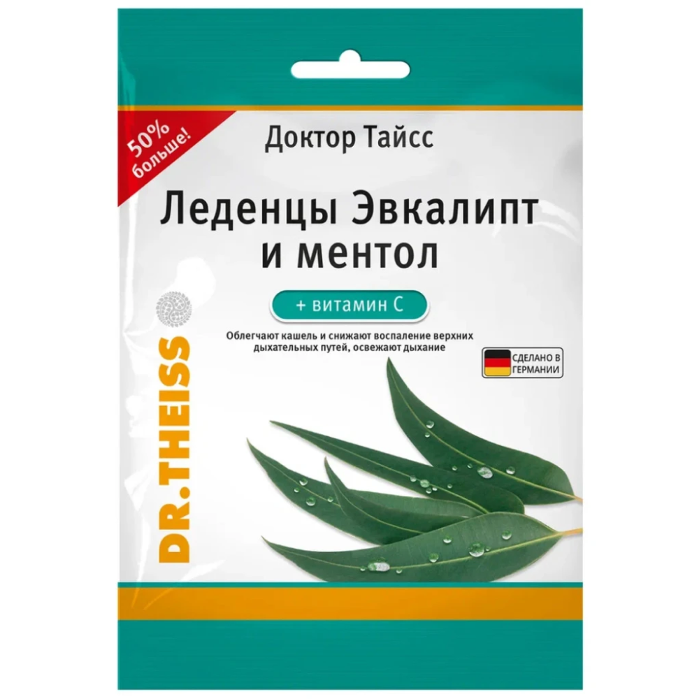 Доктор Тайсс 75 г леденцы от кашля пакет витамин С эвкалипт и ментол