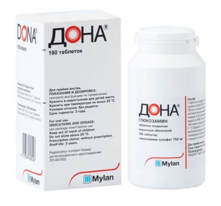 Активное вещество: глюкозамина сульфата натрия хлорид 942 мг, в т.ч. глюкозамина сульфата 750 мг, натрия хлорида 192 мг.
