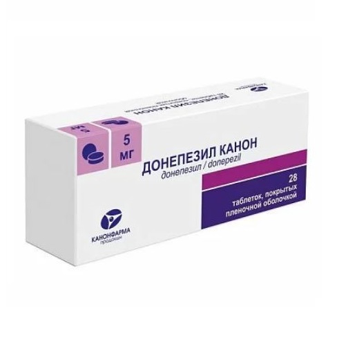 Действующее вещество: донепезила гидрохлорид 5 мг (в виде донепезила гидрохлорида моногидрата).