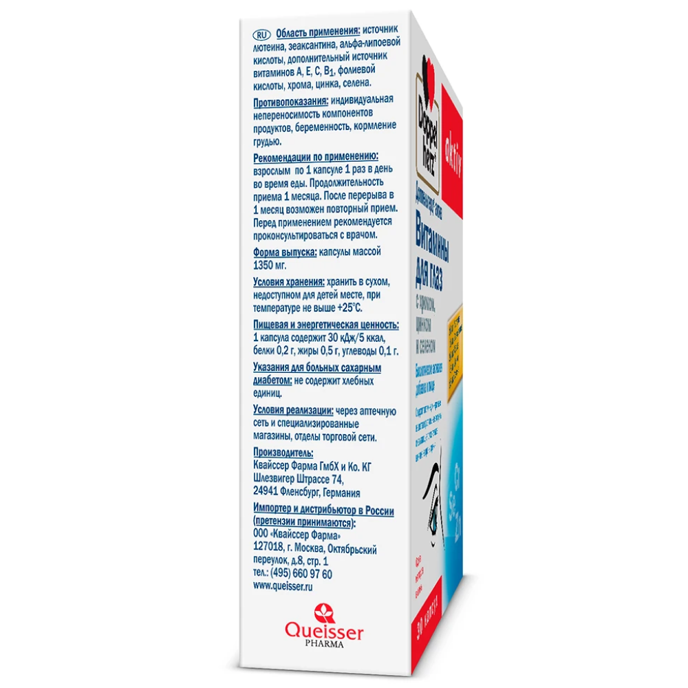 Комплекс разработан для восполнения дефицита витаминов и минеральных веществ. Черника, лютеин и зеаксантин улучшают зрительную функцию, оказывают положительное влияние на сетчатку, уменьшают усталость глаз.