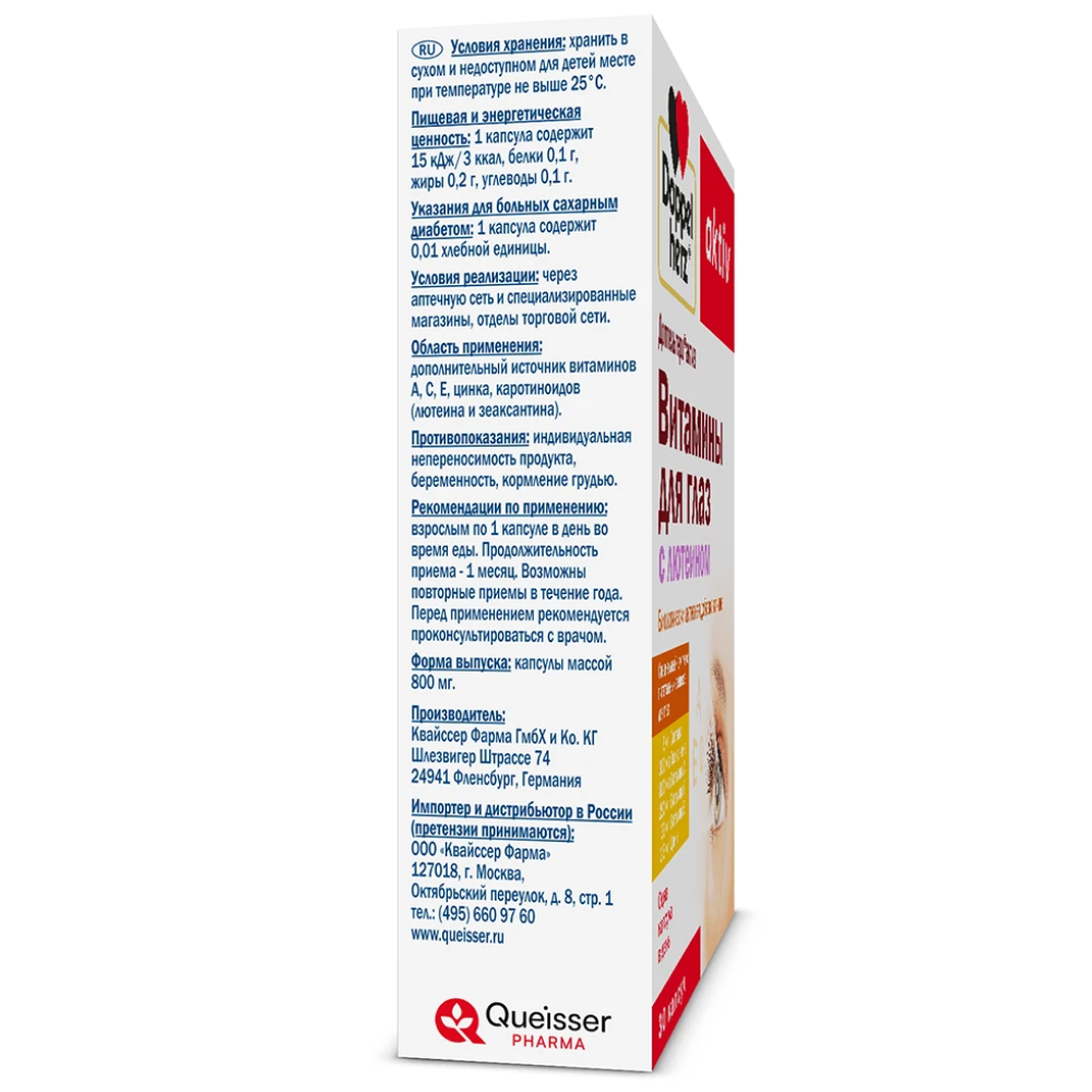 Лютеин, зеаксантин, витамины А, С, Е и цинк — специальный комплекс питательных веществ для глаз.