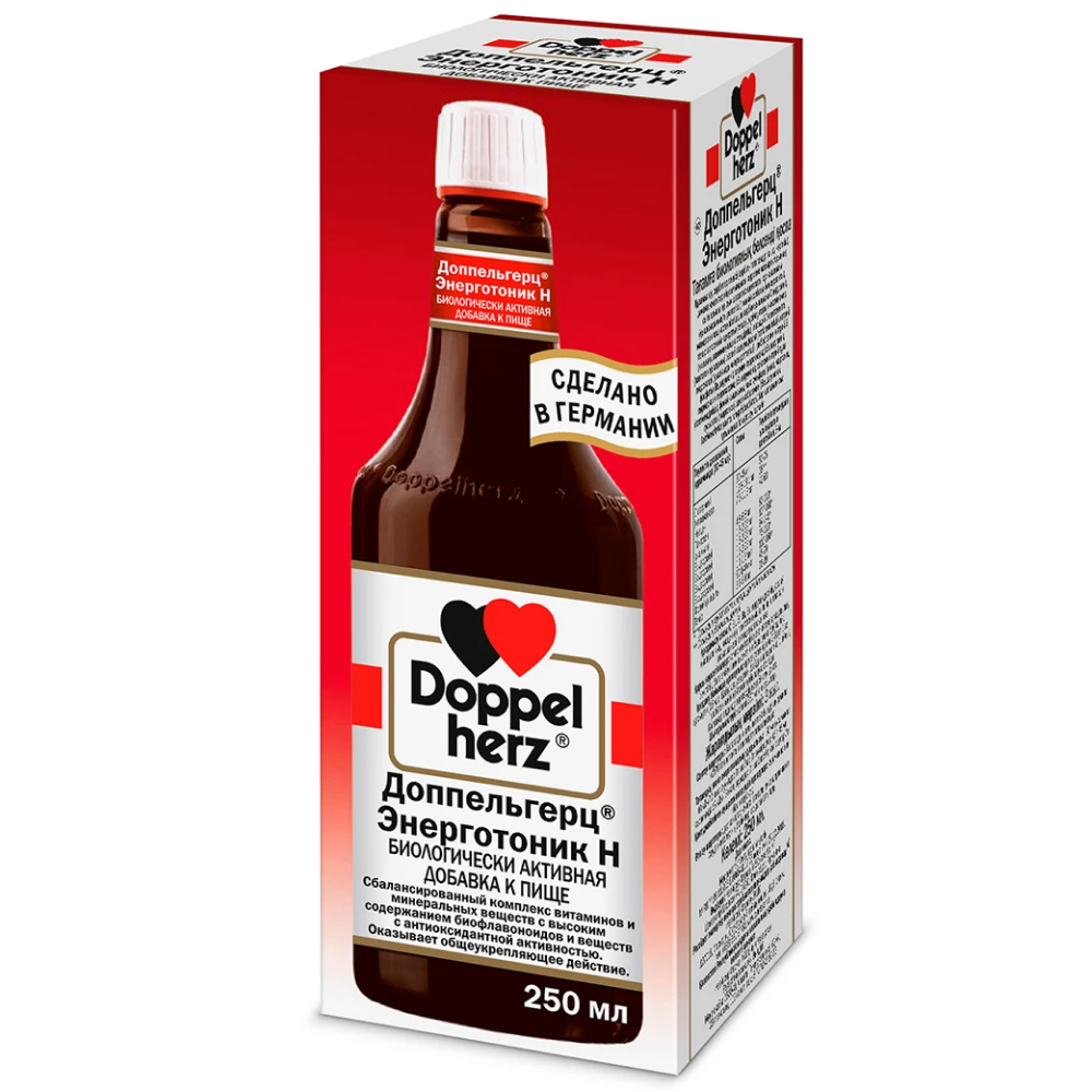 Доппельгерц® Энерготоник Н – комплекс витаминов и минеральных веществ с высоким содержанием биофлавоноидов и веществ с антиоксидантной активностью.