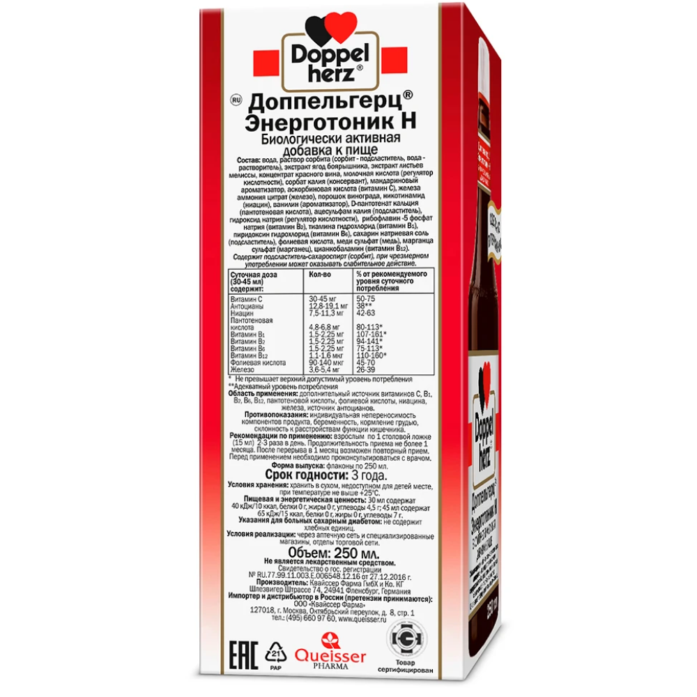 Сертификаты и лицензии “Доппельгерц Энерготоник Н 250 мл эликсир”