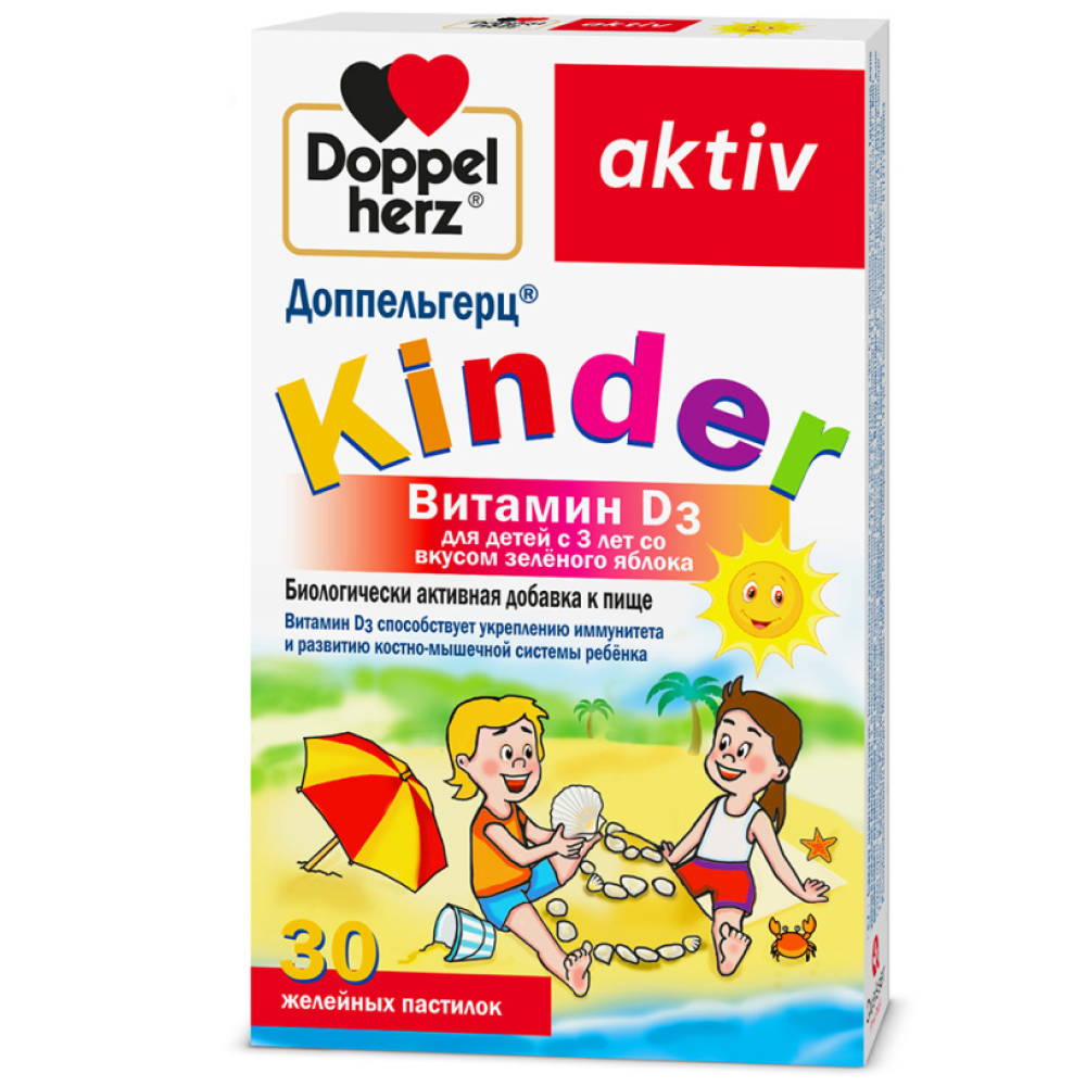 Доппельгерц Киндер Витамин Д3 30 шт пастилки жевательные для детей с 3 лет зеленое яблоко
