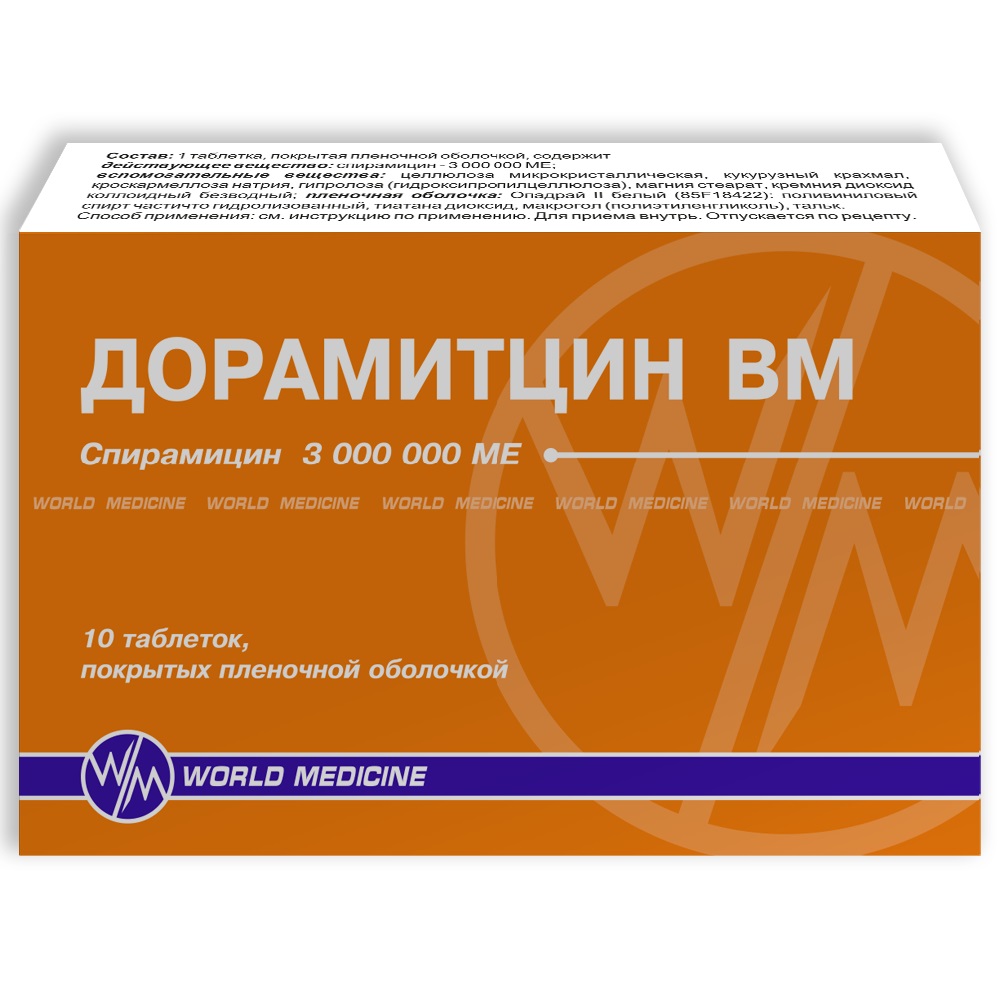- острый синусит (учитывая чувствительность наиболее часто вызывающих эту патологию микроорганизмов, применение препарата Дорамитцин ВМ показано в случае противопоказаний к применению бета-лактамных антибиотиков);