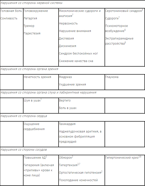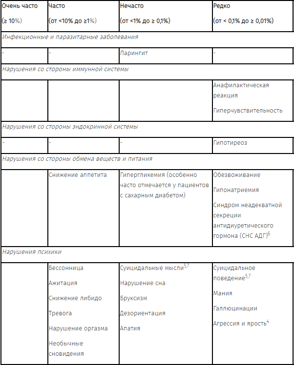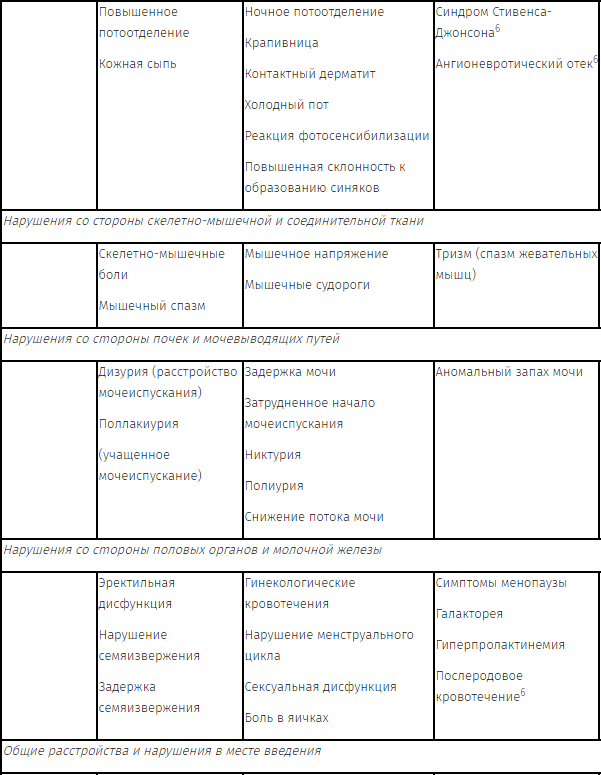 1 Случаи судорог и шума в ушах также отмечались и после отмены терапии.