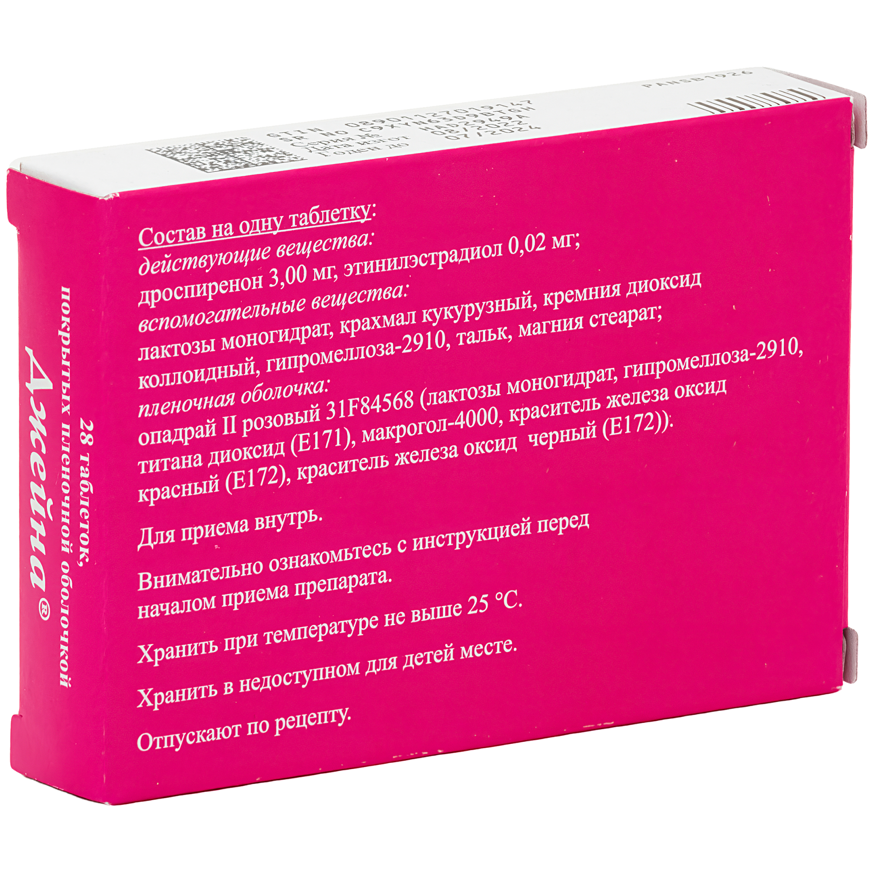 действующие вещества: дроспиренон 3,00 мг, этинилэстрадиол 0,02 мг;