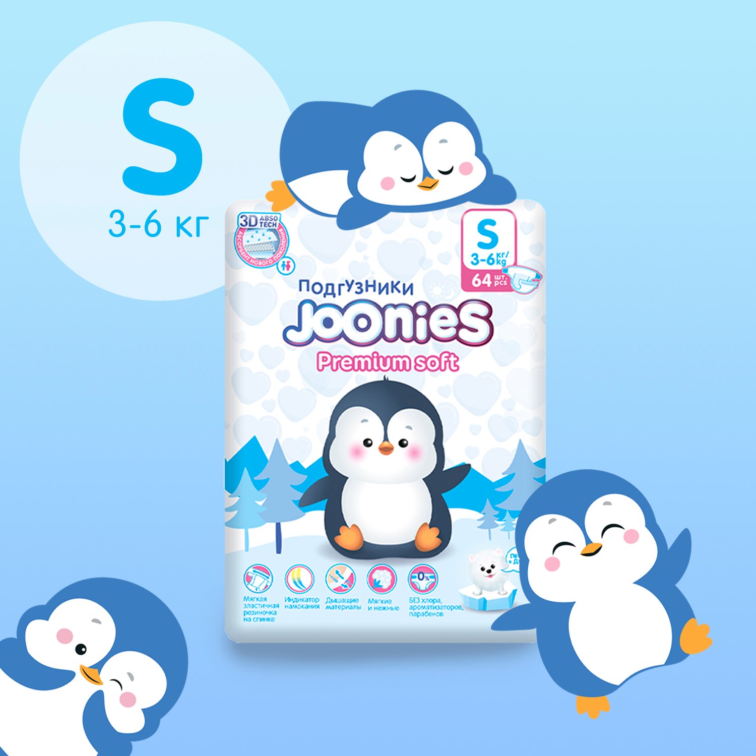 Инструкция по применению Joonies Premium Soft 64 шт подгузники для детей размер S 3-6 кг