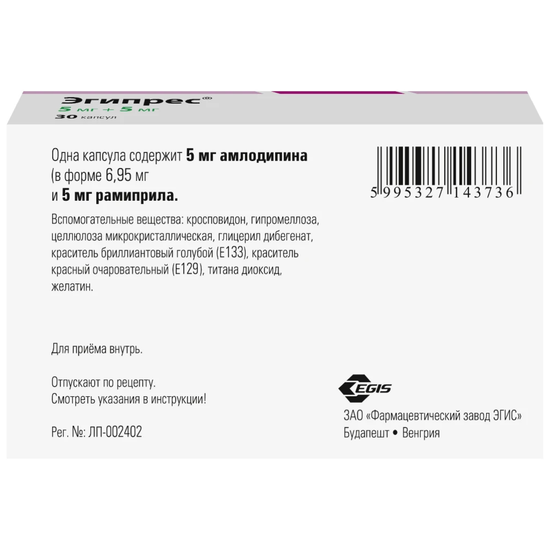 Особые указания, относящиеся к рамиприлу и амлодипину, применимы к препарату Эгипрес®.