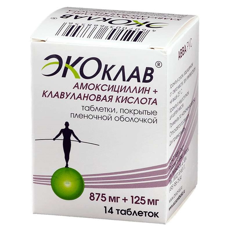 Оба действующих вещества препарата Экоклав®, амоксициллин и клавулановая кислота, быстро и хорошо всасываются при приеме внутрь. Абсорбция действующих веществ препарата Экоклав® оптимальна в случае приема препарата в начале приема пищи.