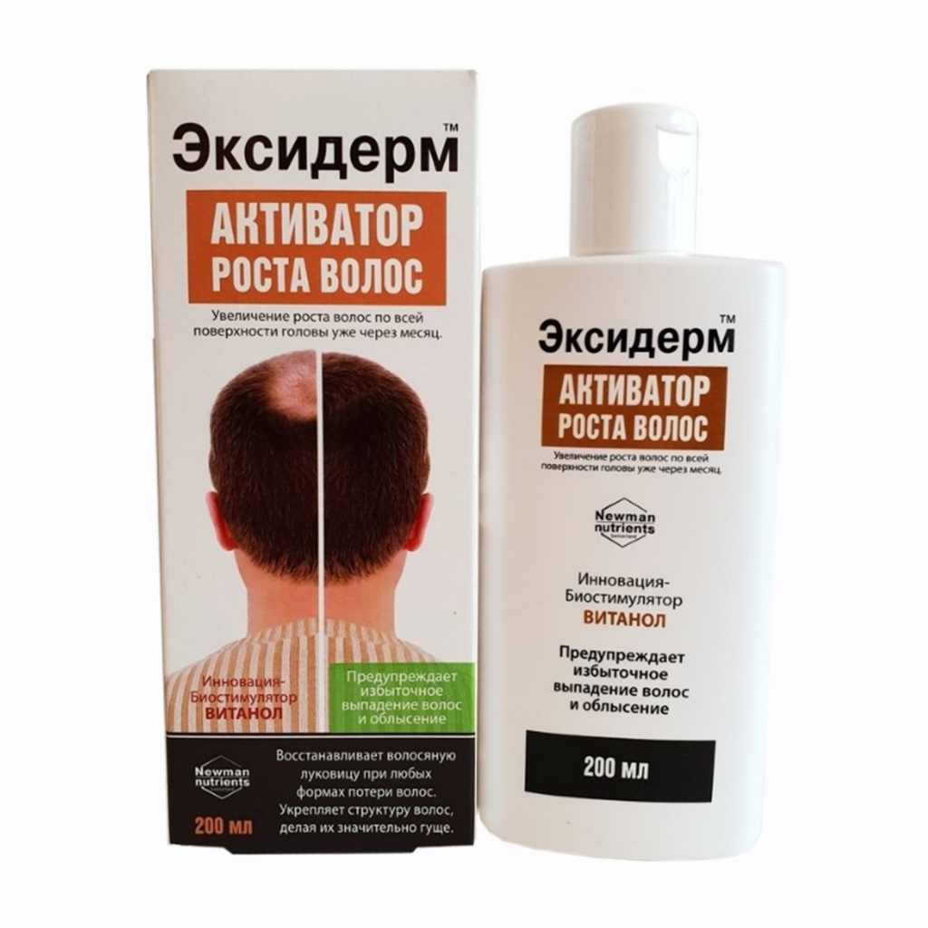 Эксидерм активирует прикорневую капиллярную сеть, обеспечивая волосяные луковицы питательными веществами, стимулирует и нормализует белковый обмен волосяных фолликул, восстанавливает поврежденную структуру волос.